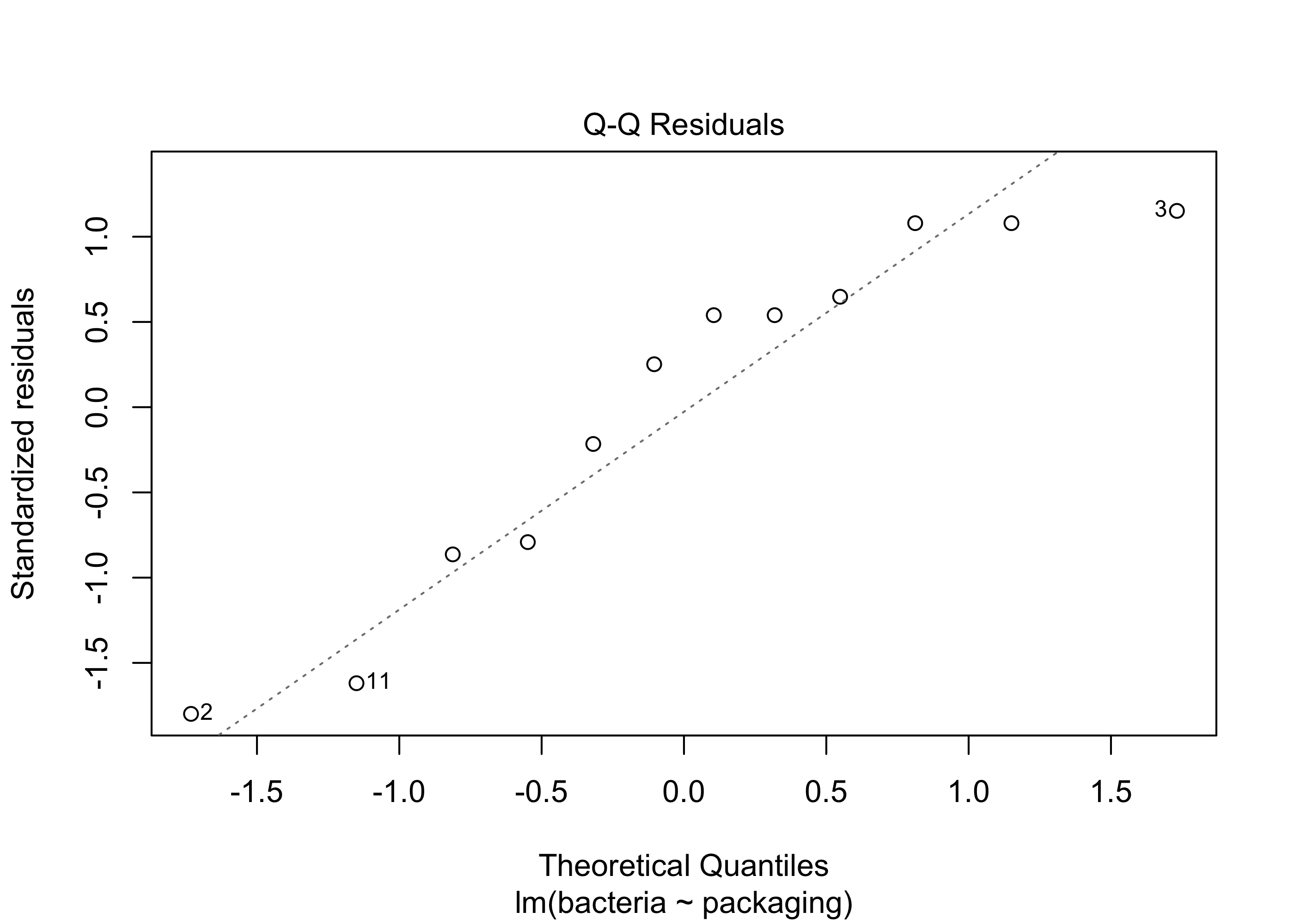 Figure 31.5: Normal Q-Q plot of the residuals in the steak packaging data.