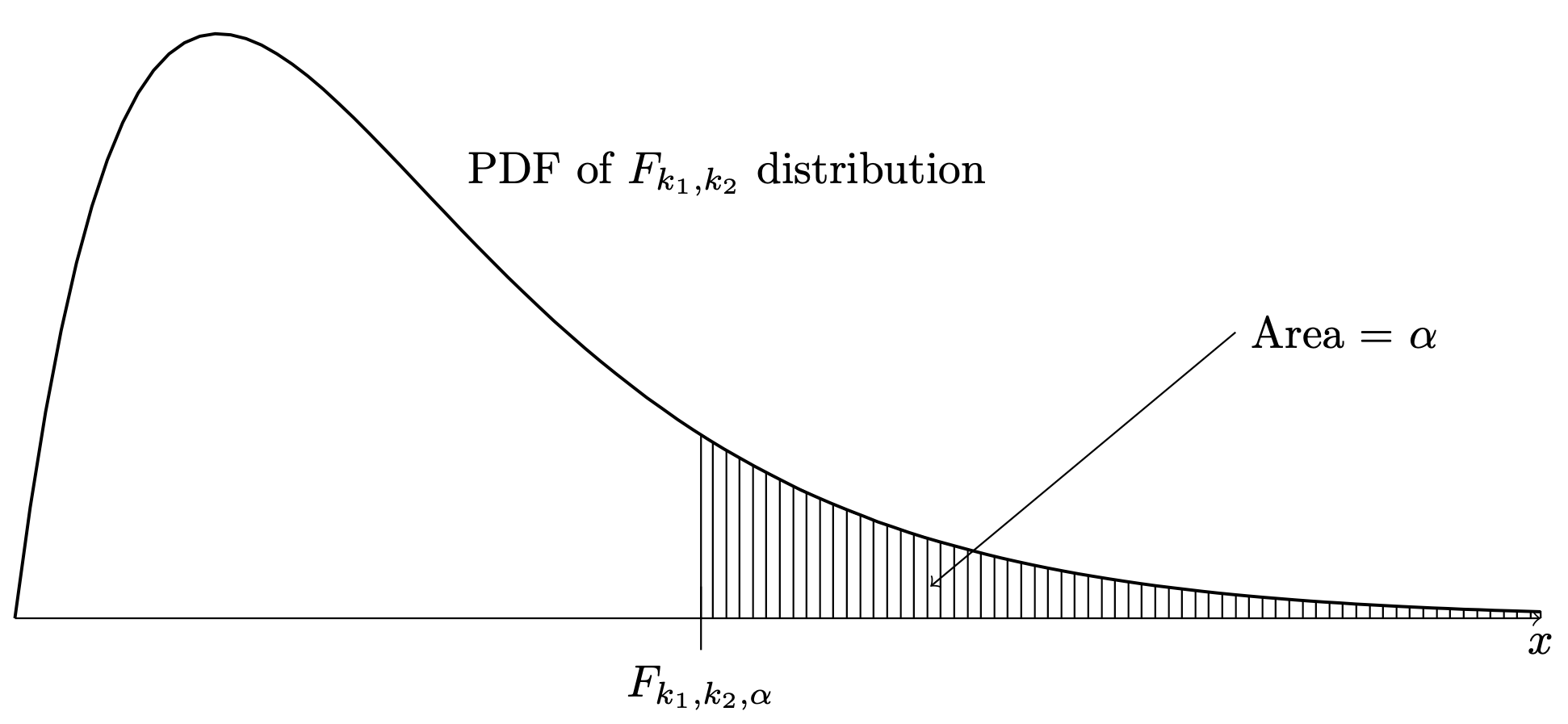 Figure 31.4: Definition of upper \(\alpha\) quantile \(F_{k_1,k_2,\alpha}\) of the \(F_{k_1,k_2}\) distribution.