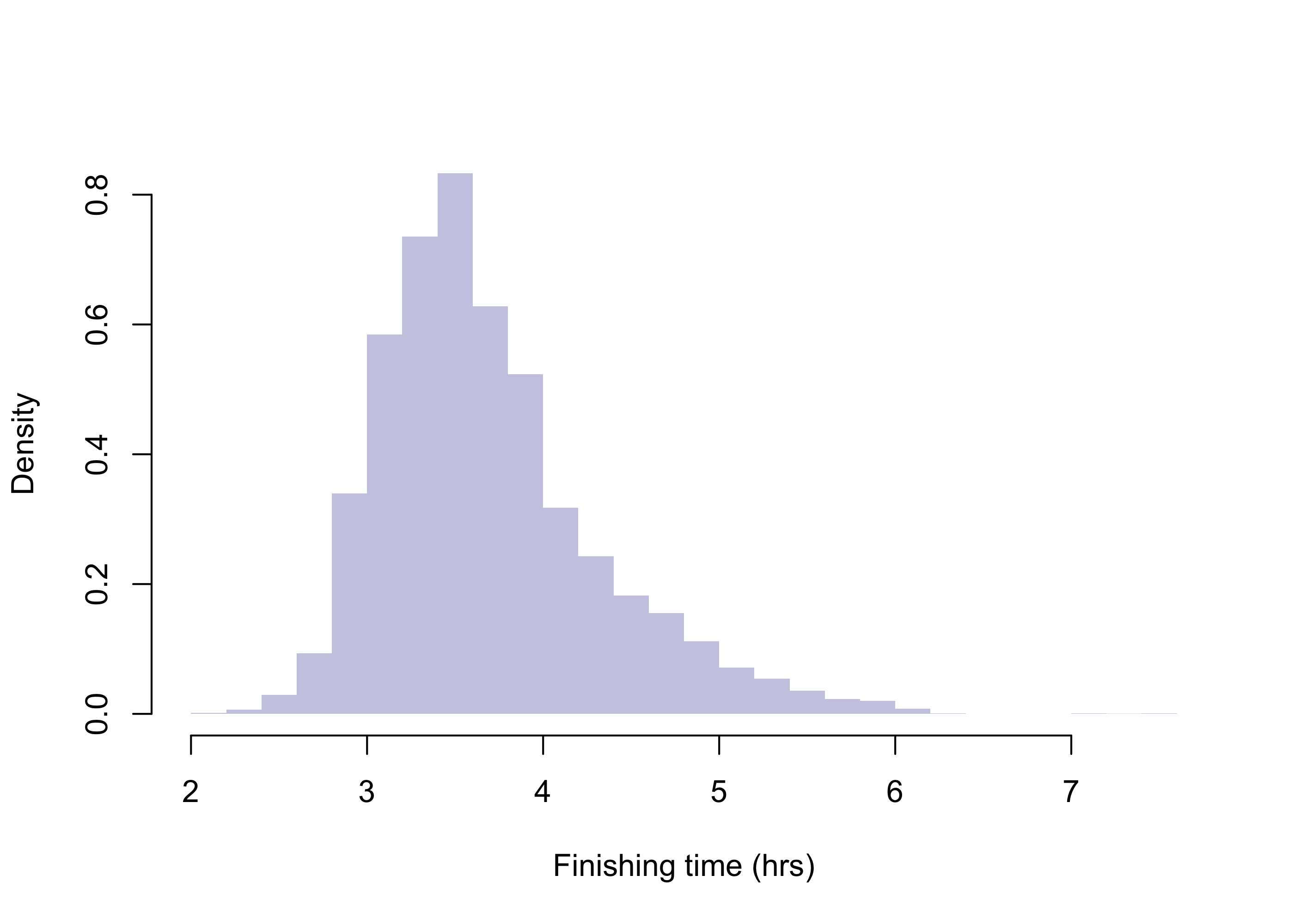Exercise 33.1 (2009 Boston Marathon mens finishing times) Refer to the data in Example 17.1 and regard the mens finishing times as a population of values