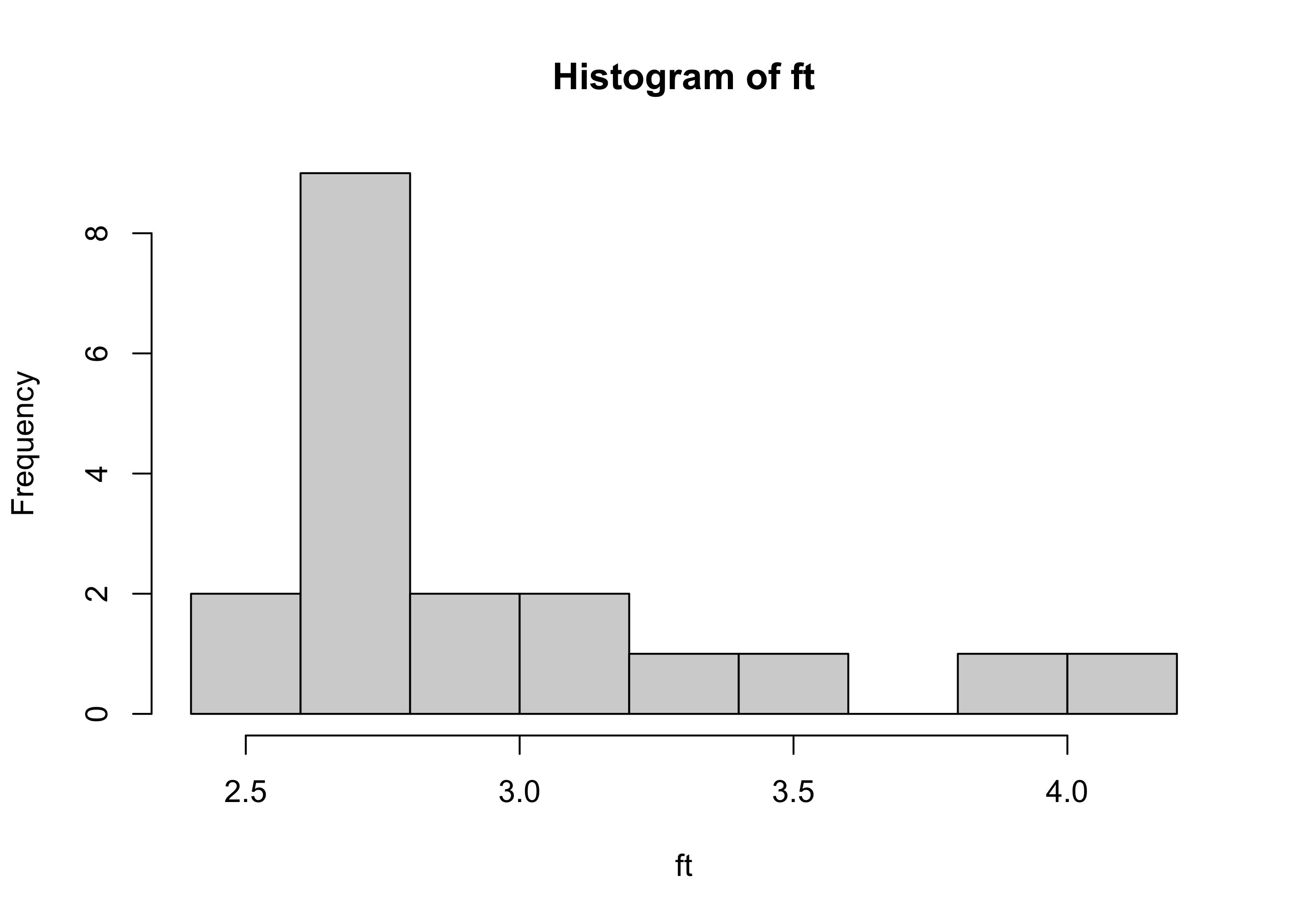 Figure 19.2: Histogram of pinewood derby finishing times.