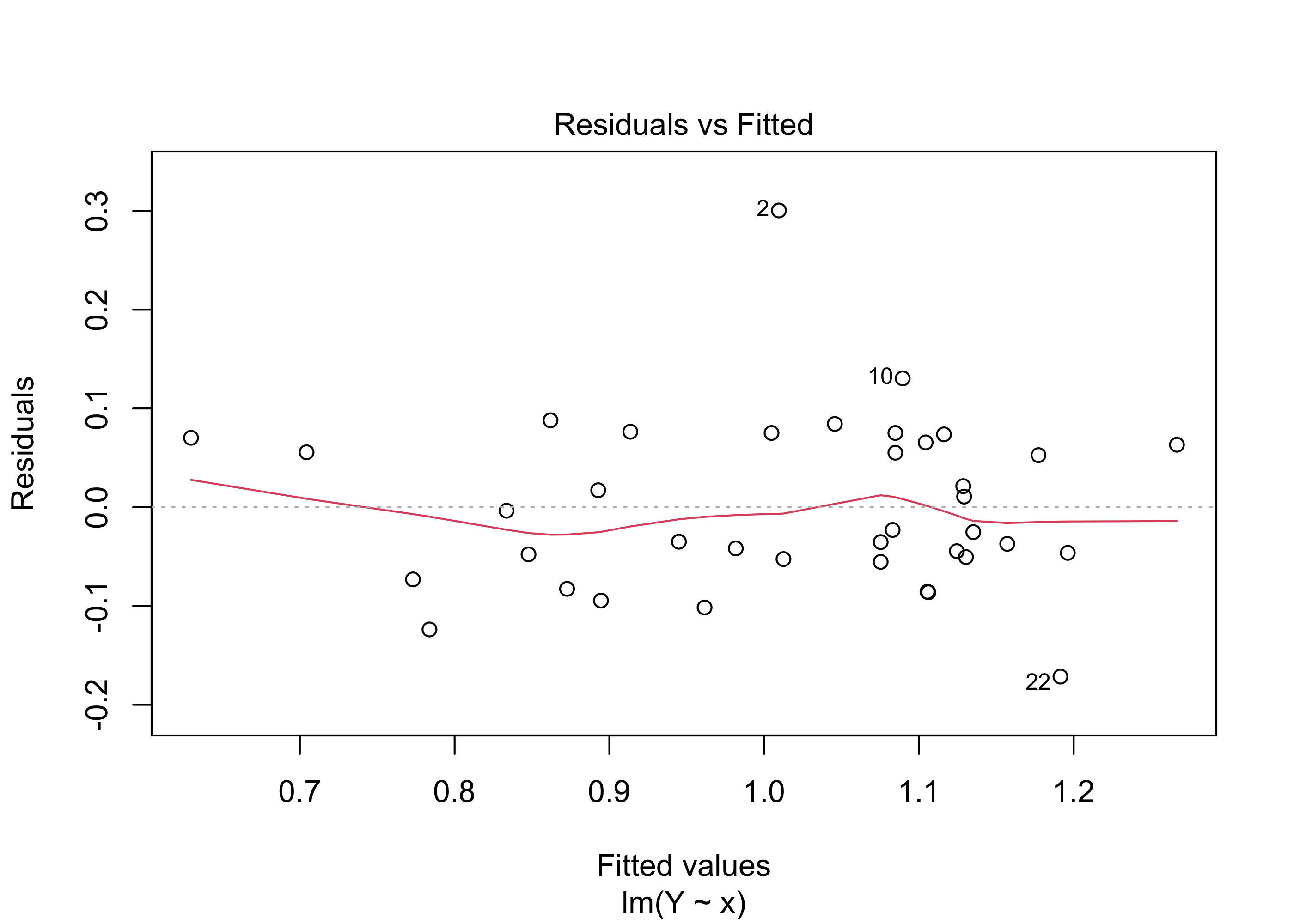 Figure 33.13 shows an example of the ideal appearance of the points in a residuals versus fitted values plot: a random scatter with no discernible pattern.