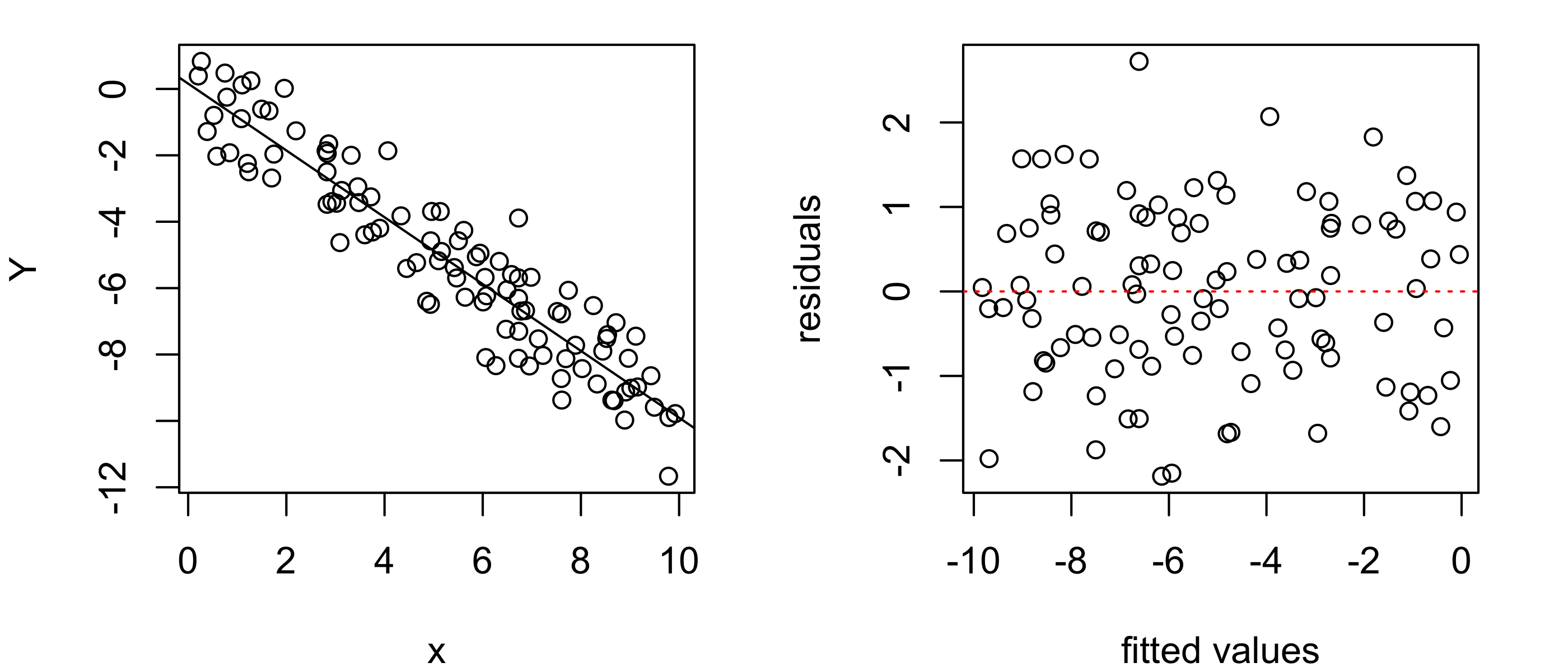 Y <- - x + rnorm(n,0,1)